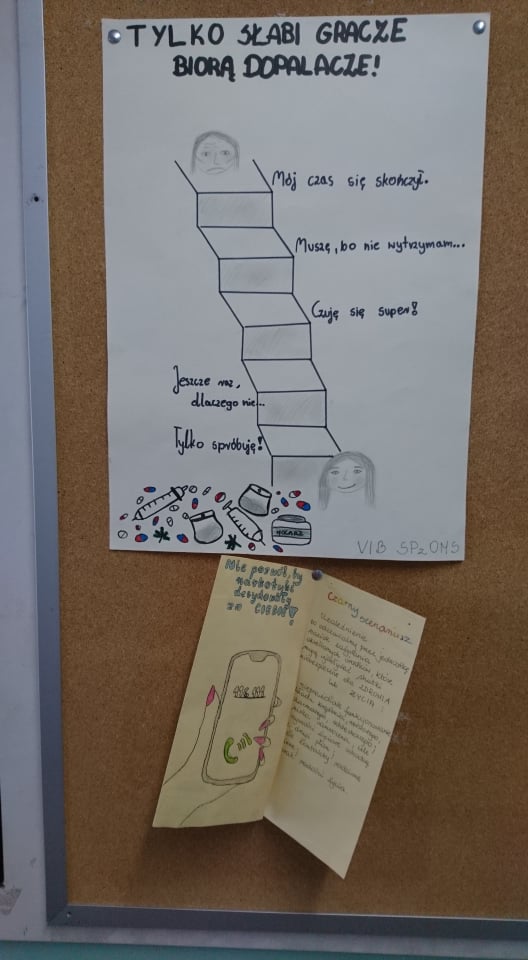 Nasi uczniowie klasy VIa i VIb w ciągu tego roku szkolnego biorą udział w programie "Dobry Wybór". To odlotowy pogram, który pomaga uczniom wybrać życie bez używek. Obecnie uczniowie realizowali III etap gry - Walka. Zadania dotyczyły obszaru "Ja i inni ludzie". Jednym z zadań było stworzenie przez klasy plakatu oraz ulotki. Oto ich prace.