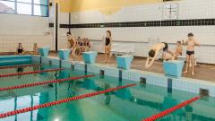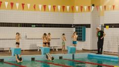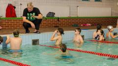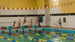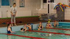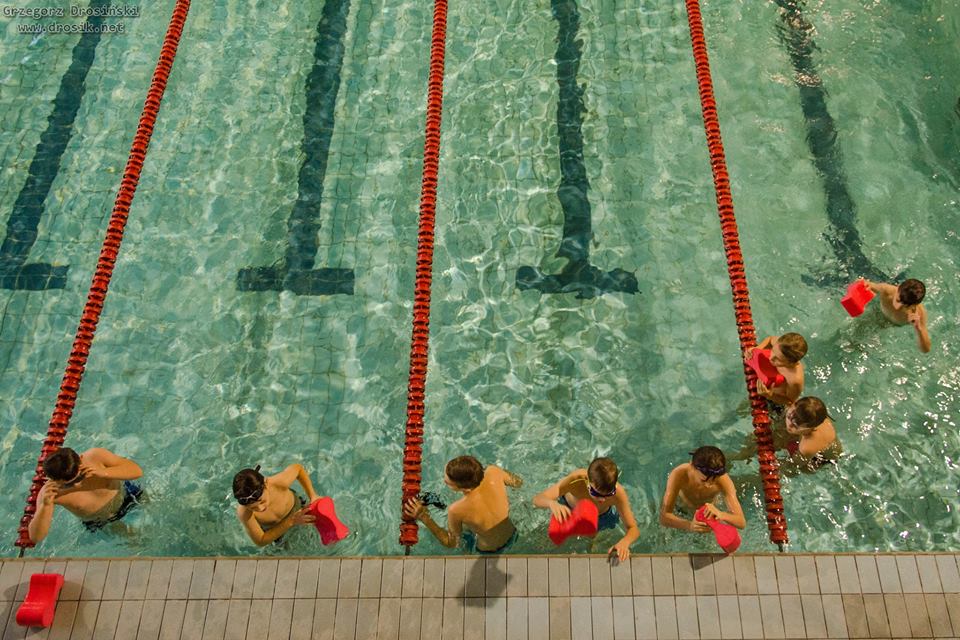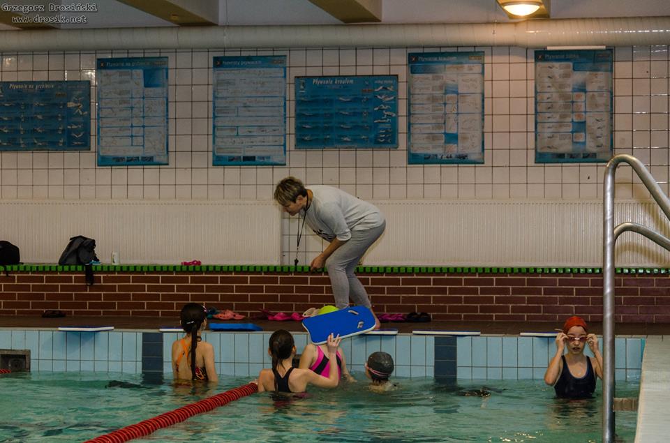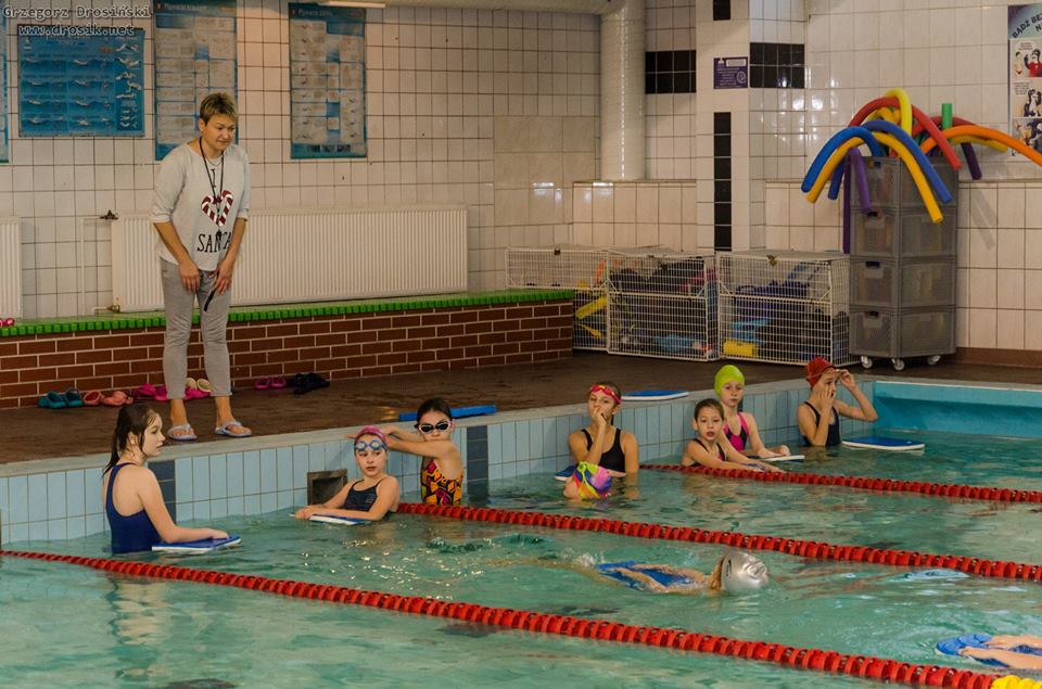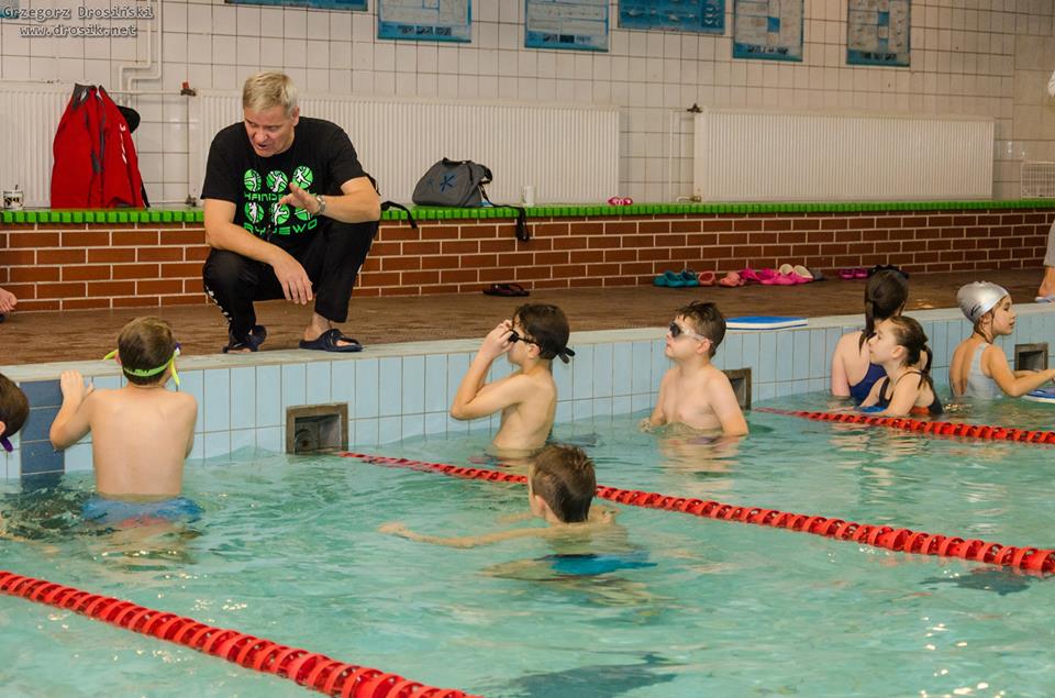 Uczniowie klasy IV a ze swoimi trenerami na basenie. Zdjęcia p.Grzegorz Drosiński.