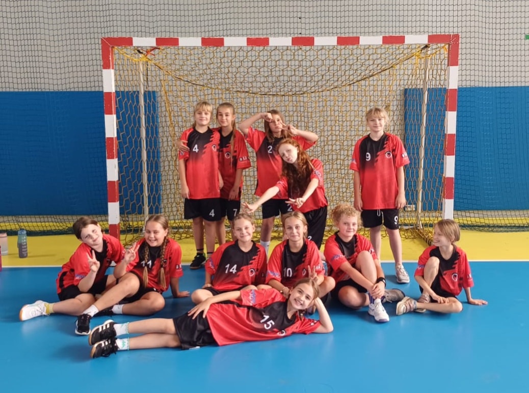 Nowe stroje szkolne dostała klasa też klasa VIIa. Na zdjęciu dziewczęta z trenerką Barbara Jadach. Dziękujemy Pani Dyrektor i oby przynosiły szczęście.