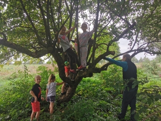 dzieci na drzewie